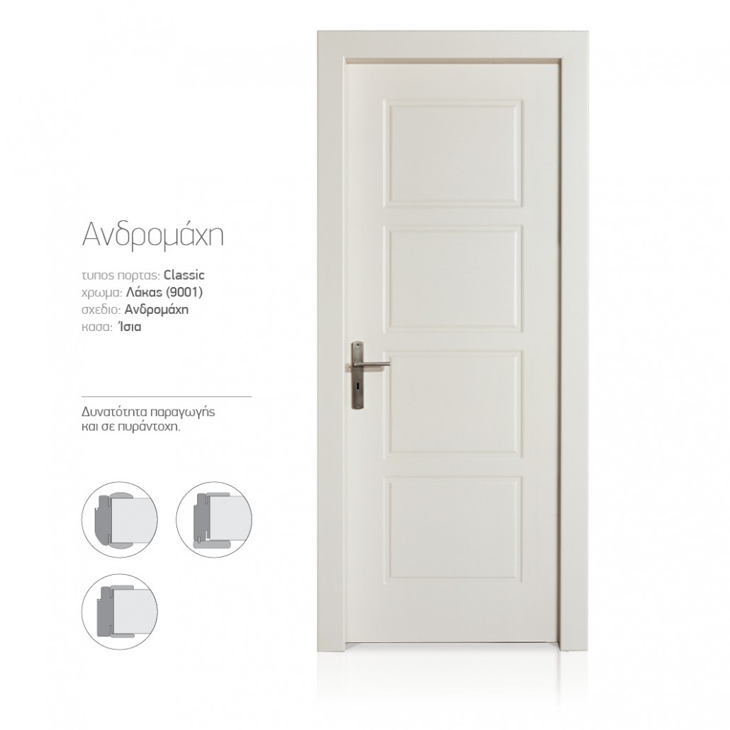 • Η πόρτα παράγεται και με κάσα ίσια και φαρδύ πρεβάζι 10cm.
